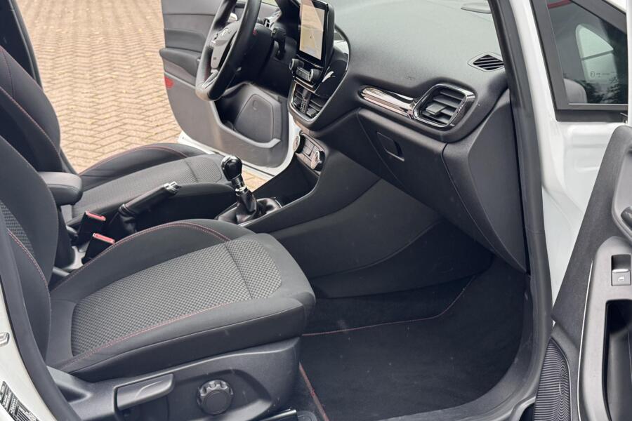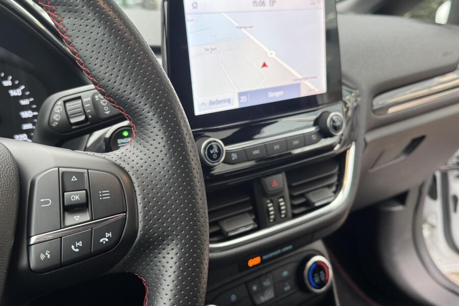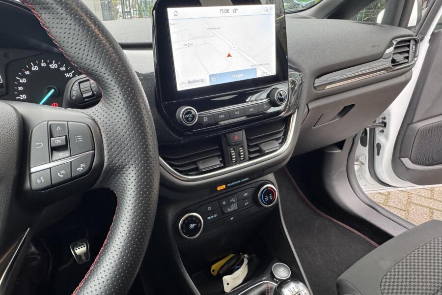 Waar u zelf ook bent, u staat altijd in contact met de auto via de app op uw smartphone. Zo controleert u uiteenlopende functies, ook op afstand. In deze Fiesta vindt u niet alleen schakelaars op het stuur om het audiosysteem te bedienen en het navigatiesysteem, maar er is ook spraakbediening. In een auto als deze kunt u niet zonder climate control, zodat de temperatuur altijd goed is. Soms heeft u meer parkeerruimte dan u denkt. Maar soms ook niet. De parkeersensoren vertellen precies hoeveel. Met de elektronische sleutel in uw zak en met één druk op de knop start u de auto. Dat is keyless start! Met sportstuurwiel, centrale deurvergrendeling met afstandsbediening, boordcomputer en lederen versnellingspook is deze auto helemaal compleet.